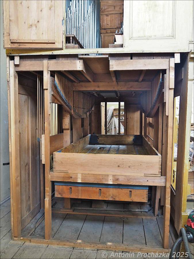 Ivanovice na Hané, kostel sv. Ondřeje. V pondělí 15. září 2025 začala práce na opravě, čištění a naladění varhan. Měch si varhanáři odvezli do dílny. | ![]() |
