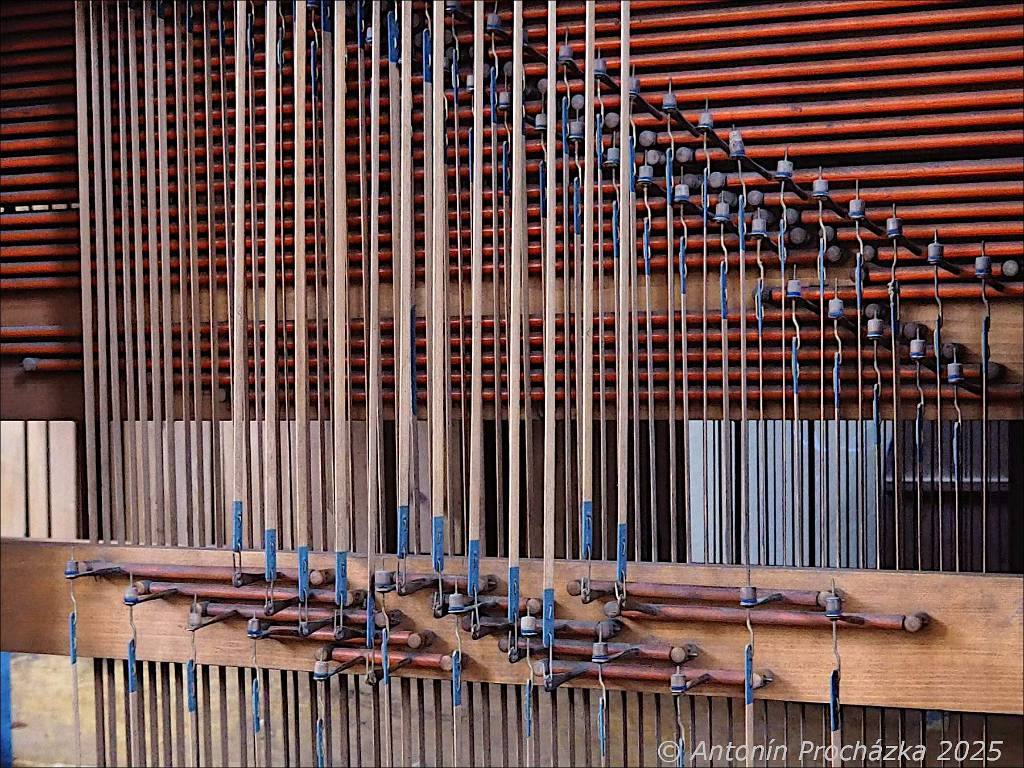 Ivanovice na Hané, kostel sv. Ondřeje. V pondělí 15. září 2025 začala práce na opravě, čištění a naladění varhan. Detailní pohled na hrací trakturu. | ![]() |