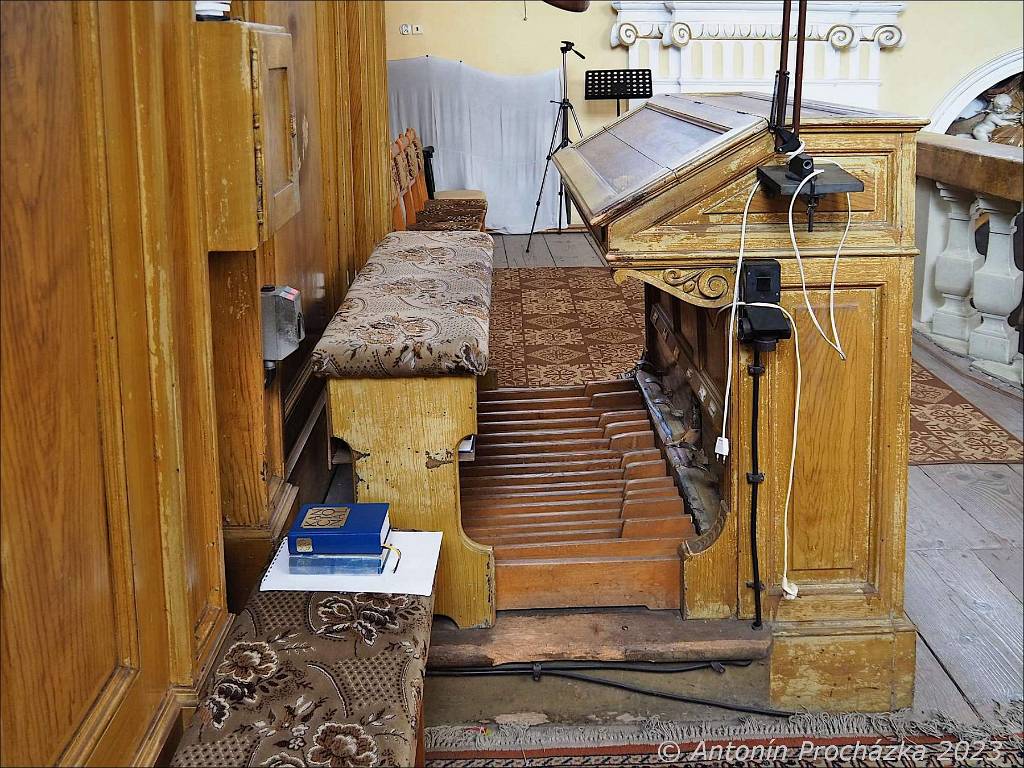 Ivanovice na Hané 11. 10. 2023 – varhany v kostele sv. Ondřeje. Hrací stůl se skládá z klaviatury manuálové, pro hru rukama a pedálu, pro hru nohama. | ![]() |