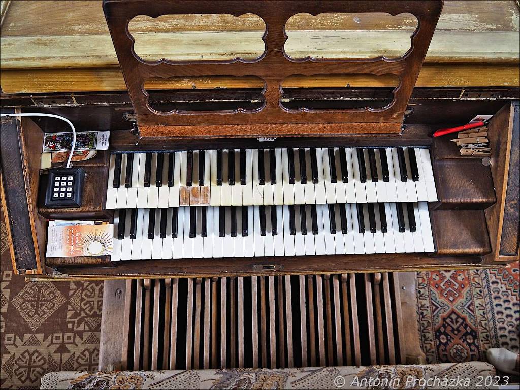 Ivanovice na Hané 11. 10. 2023 – varhany v kostele sv. Ondřeje. Hrací stůl se skládá z klaviatury manuálové, pro hru rukama a pedálu, pro hru nohama. | ![]() |