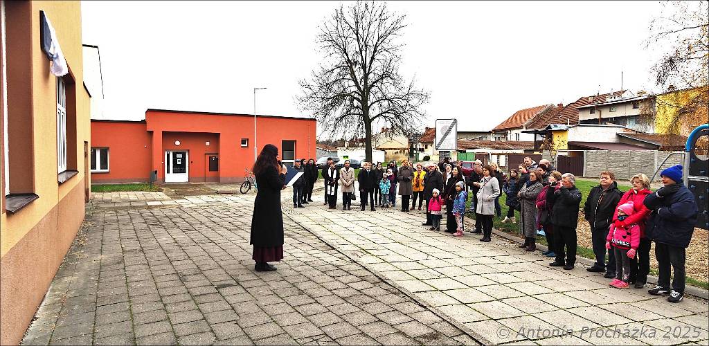 | Ivanovice na Hané 9. 11. 2025 – Pocta B. A. Wiedermannovi. Slavnostní koncert s odhalením pamětní desky a požehnání knize o B. A. Wiedermannovi. Paní učitelka Tereza Suchomelová seznámila přítomné s životem B. A. Wiedermanna. | |